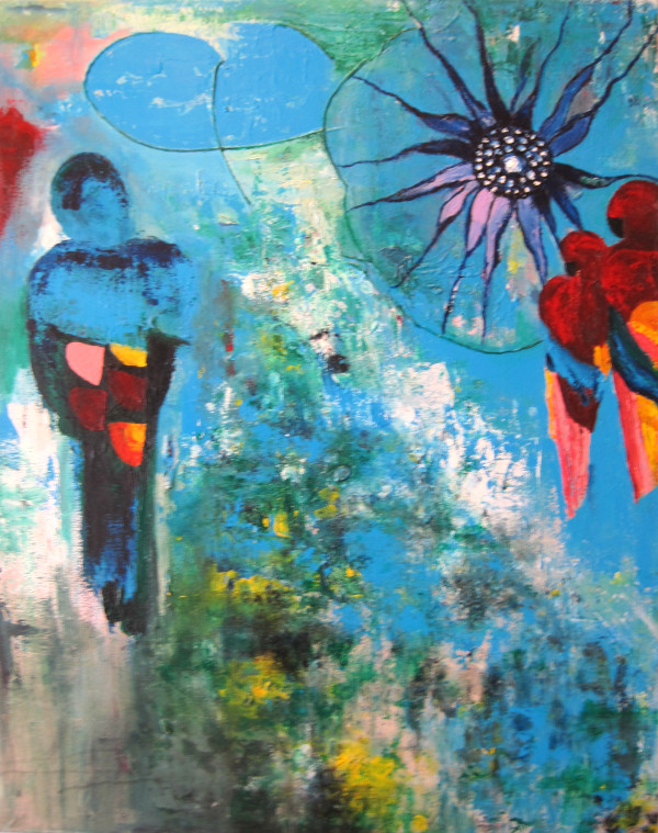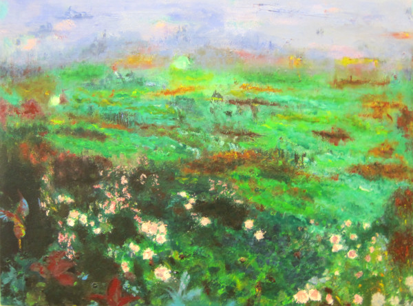 I udstillingen er der også nogle ældre billeder, der nærmer sig det naturalistiske, men som også har vægt på det koloristiske med stærke farver. Sima leger med jordfarver i kontrast til de mere farverige.